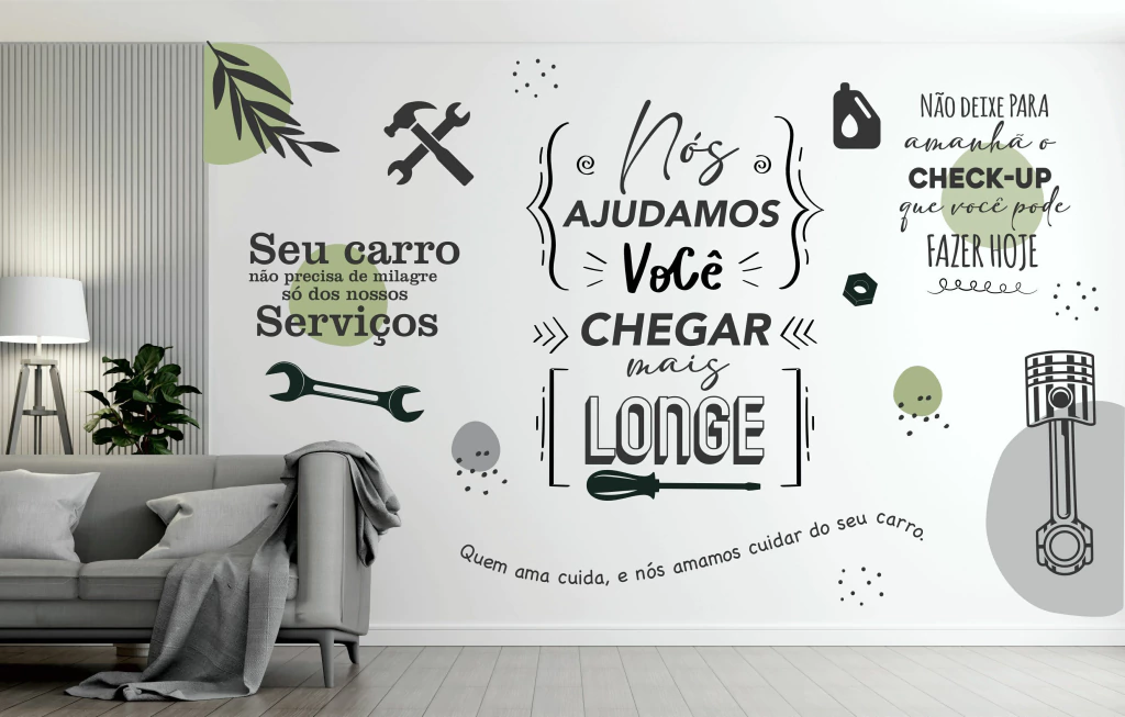 BM29 Adesivo para mecânico oficina seu carro ajudamos você chegar longe decoração criativa sem fundo